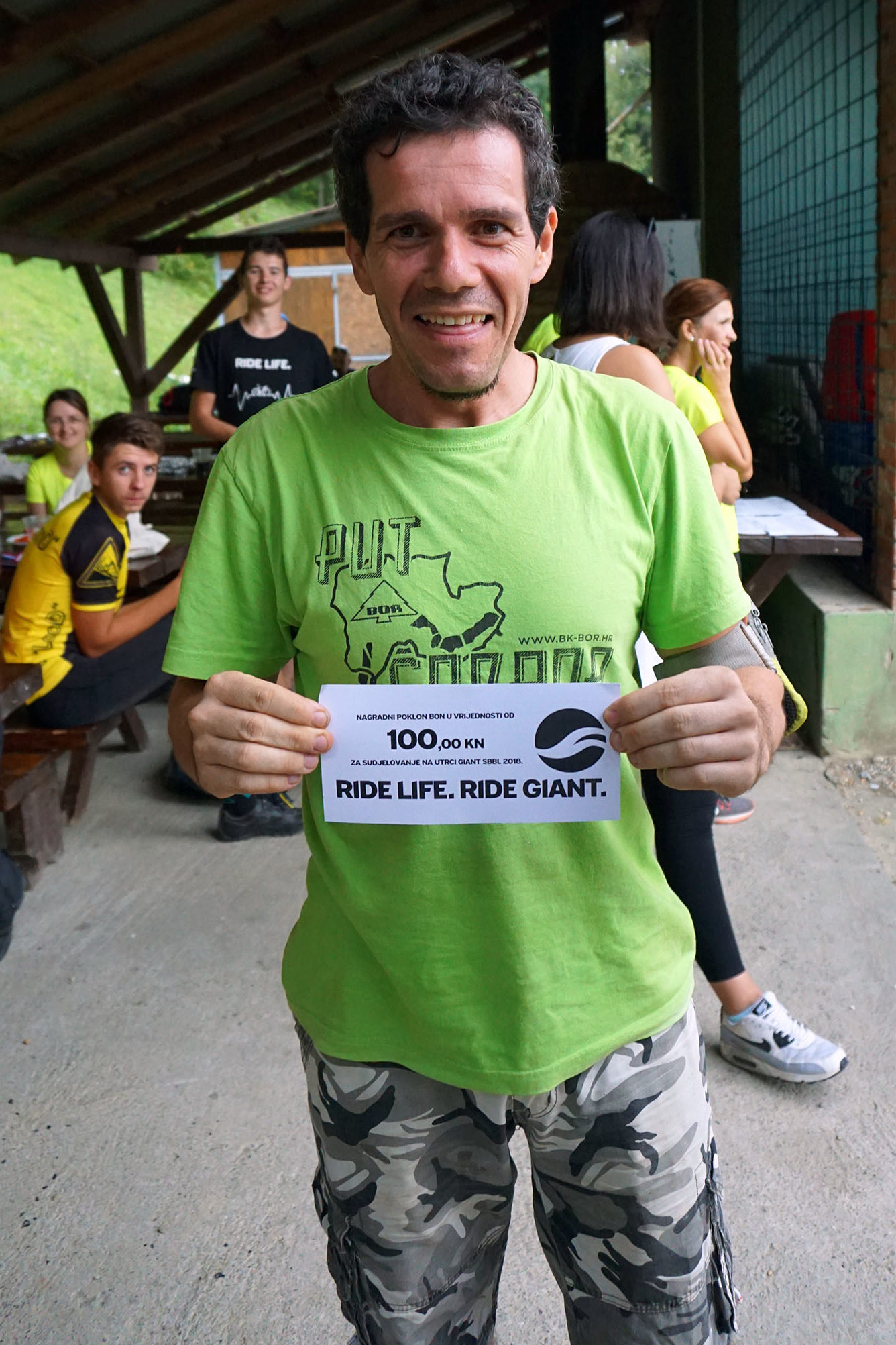 Nakon utrke okrijepili smo se čevapima i pivom, a Matko je osvojio utješno grlo, osvojivši na tomboli Giant poklon bon.